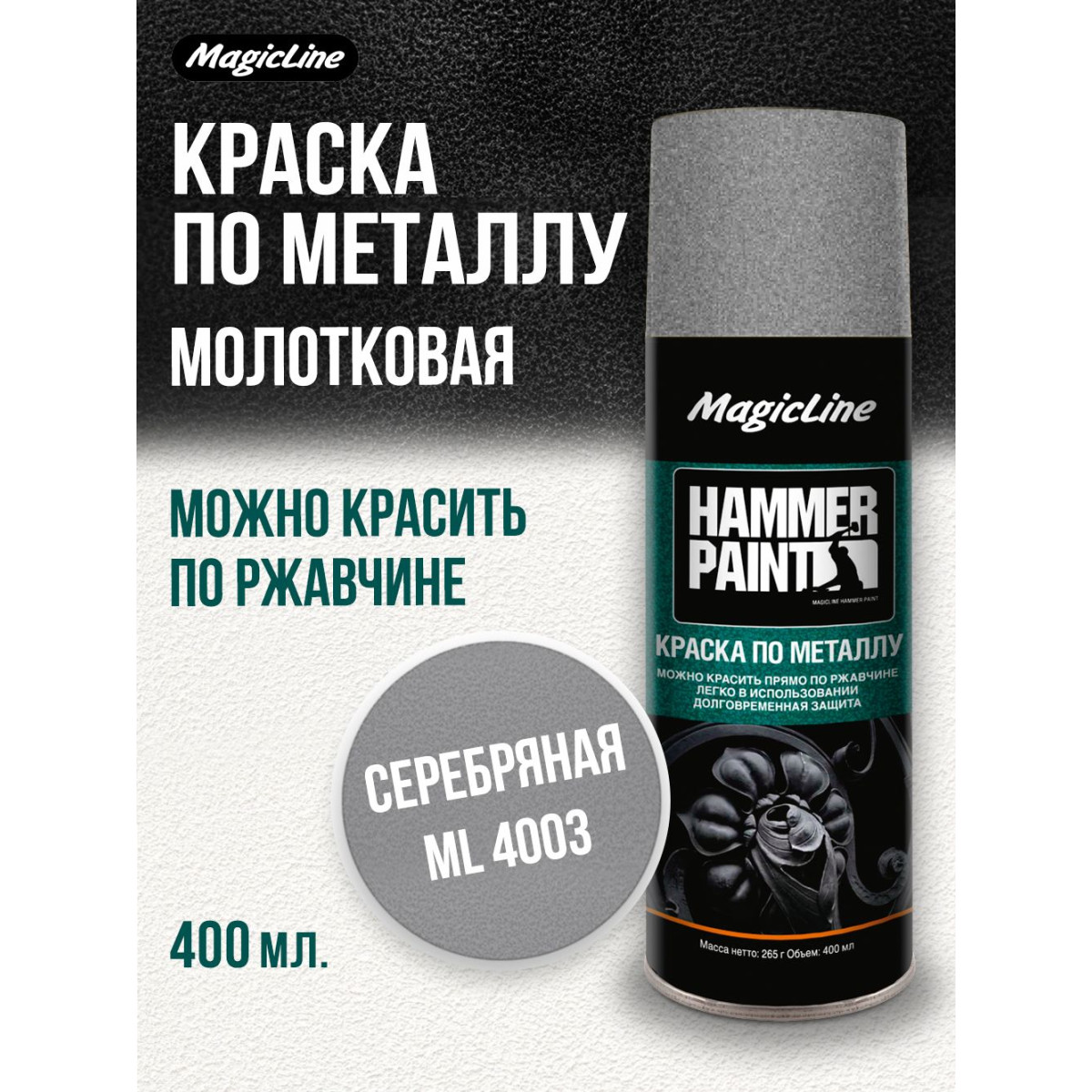 Краска по металлу (молотковая) серебряный (265г)